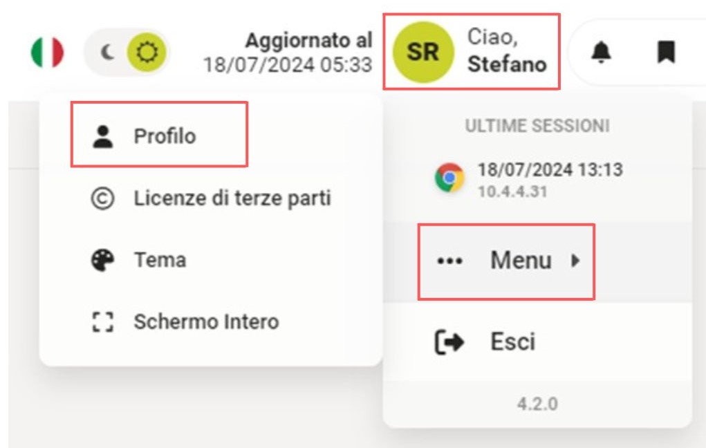 Passando il mouse sopra al tasto Menu, puoi accedere a varie opzioni, come la pagina Profilo: