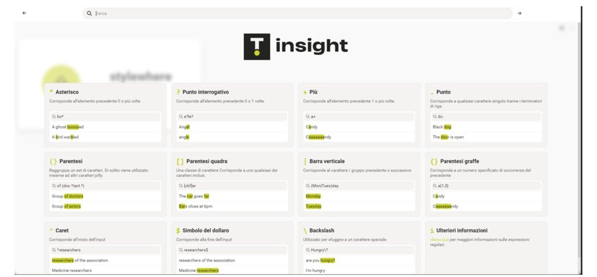 Quando clicchi sulla barra di ricerca, nella parte inferiore dello schermo sono elencate delle espressioni che possono essere utili per la ricerca.